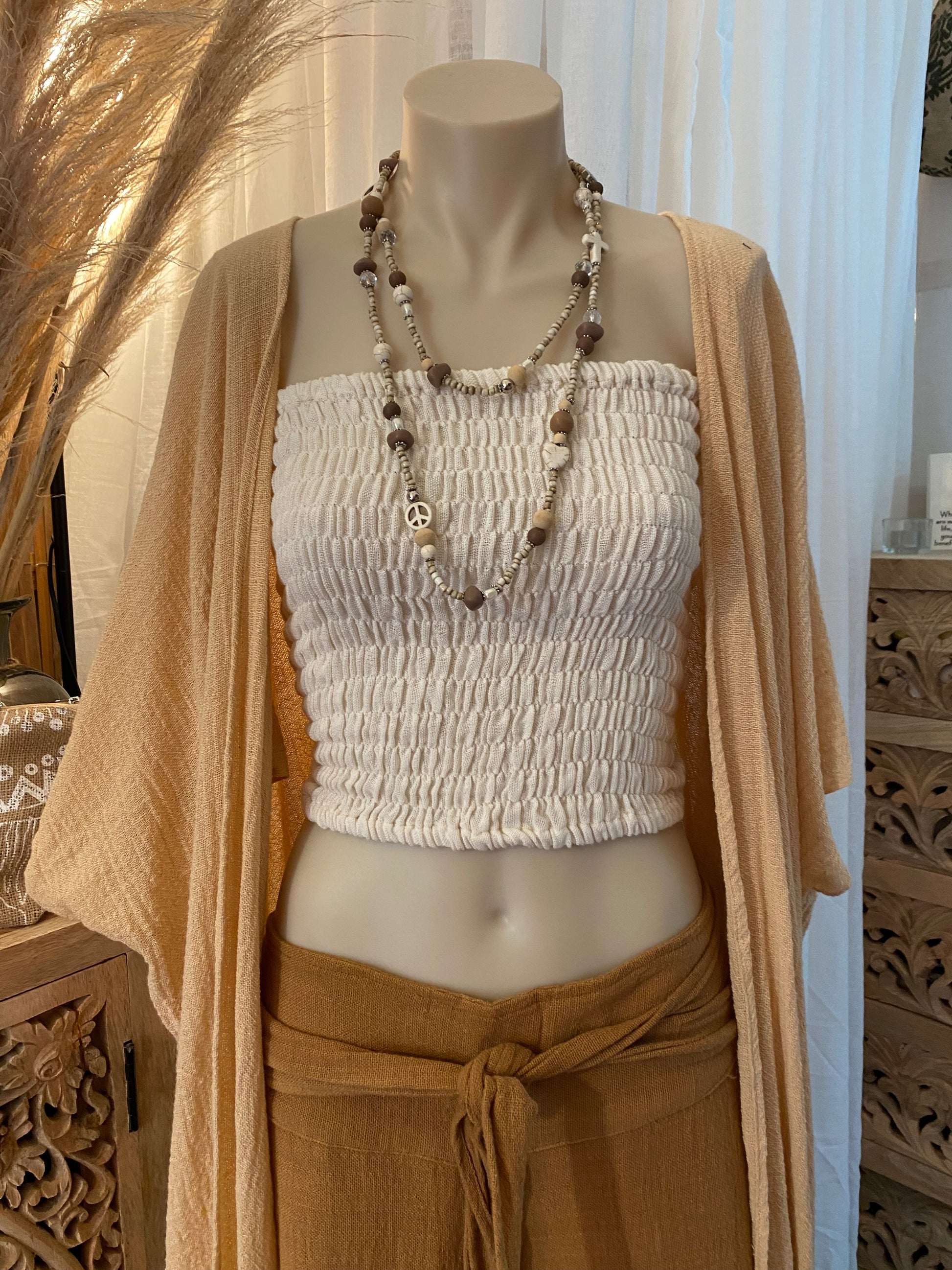 Get playful from day to night with our Ramie Boobtube! Made from durable ramie fabric, this versatile piece can be styled in countless ways, making it a must-have for any wardrobe. Embrace your creativity and switch up your look effortlessly with this quirky and fun addition to your closet. Paired with our Ramie shorts and resort pants .