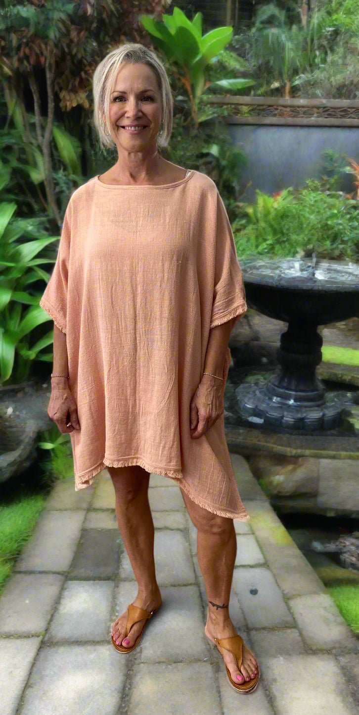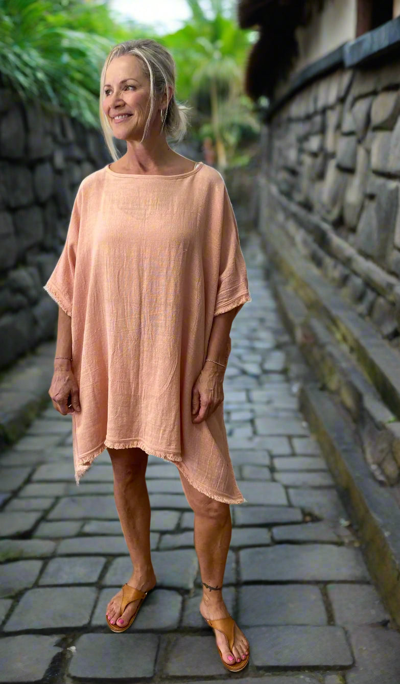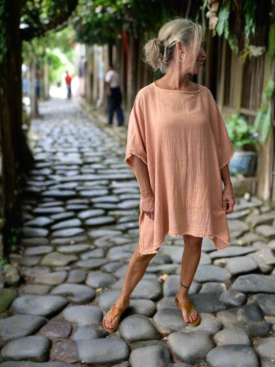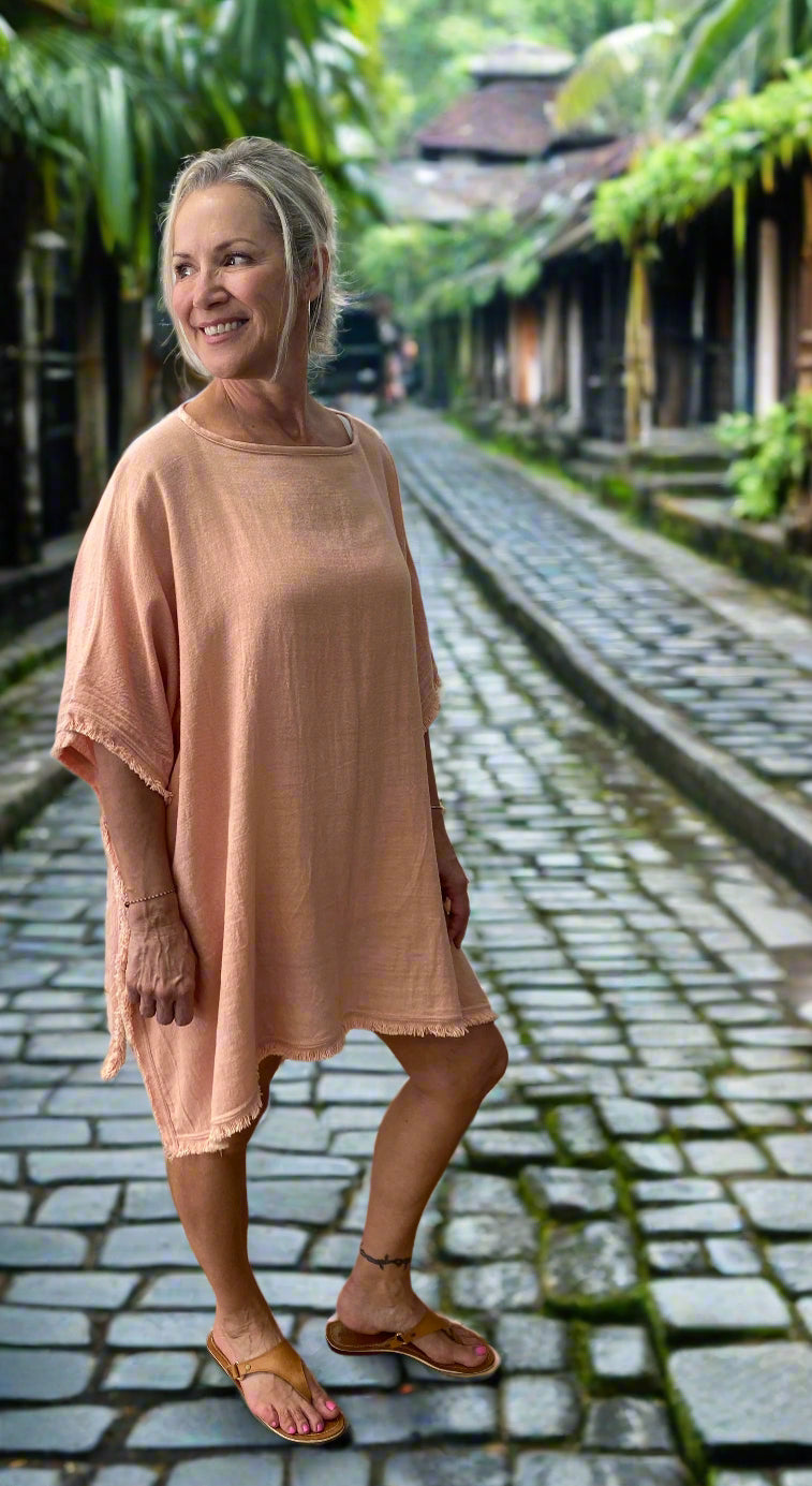 Experience the effortless beauty of our VTOP RAW EDGE! handmade with luxurious ramie fabric and a raw edge design, this top is comfortable, flowing and elegant. This must-have fashion item is paired with our gorgeous leather sukaah sandals for everyday wear. Pair it with a pair of Ramie Shorts or Long Pocket Pants.